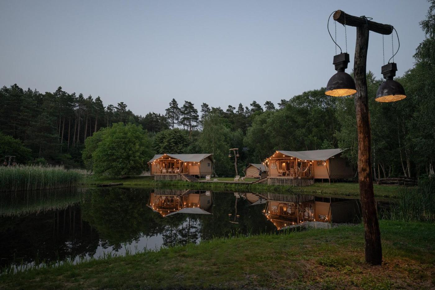 Domek nad wodą. The sauna is a top feature of this bungalow. Boasting a private entrance, this air-conditioned bungalow comes with 1 living room, 2 separate bedrooms and 1 bathroom with a bath. Guests will find a stovetop, a refrigerator, a dishwasher and kitchenware in the fully equipped kitchenette. The bungalow also includes a barbecue. The bungalow has a coffee machine, a seating area, a dining area as well as a terrace with lake views. The unit has 4 beds. Bungalow - 4 osobowy. Powierzchnia pokoju ok.: 50 mkw. ;