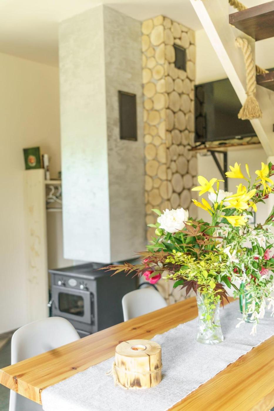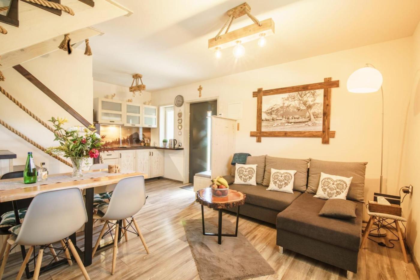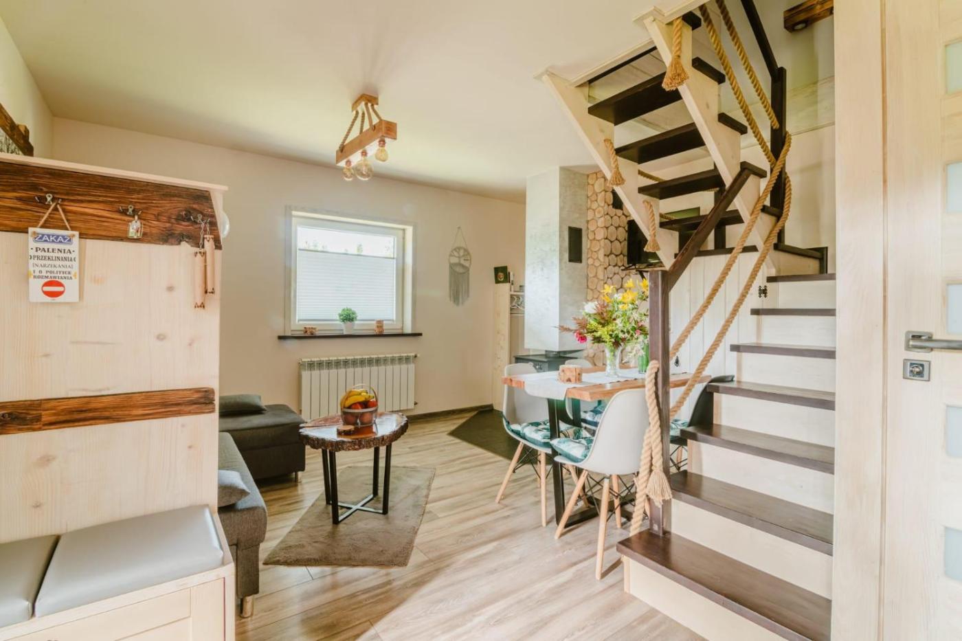 Domek z 2 sypialniami. This chalets standout feature is the fireplace. Boasting a private entrance, this air-conditioned chalet includes 1 living room, 2 separate bedrooms and 1 bathroom with a shower and a hairdryer. Guests will find a stovetop, a refrigerator, kitchenware and a microwave in the fully equipped kitchen. The chalet also features a barbecue. Featuring a terrace with garden views, this chalet also offers a tea and coffee maker and a flat-screen TV with cable channels. The unit has 4 beds. Domek - 6 osobowy. Powierzchnia pokoju ok.: 70 mkw.