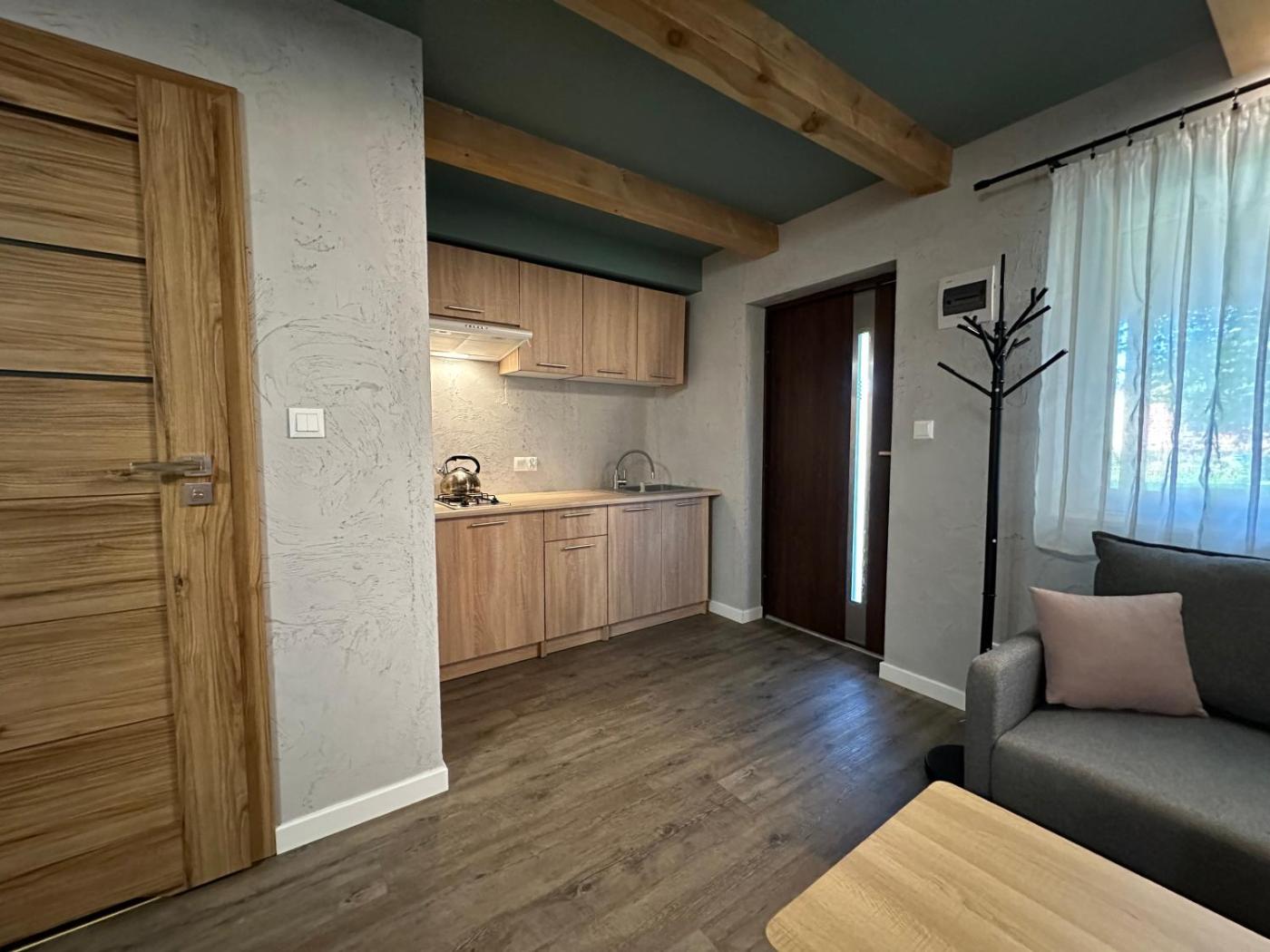 Pokój rodzinny. Guests will find a refrigerator, kitchenware, a microwave and an electric kettle in the kitchenette. The family room also has a barbecue. The family room offers a private entrance, a seating area, a terrace with garden views as well as a private bathroom featuring a shower. The unit offers 2 beds. Rodzinny - 2 osobowy. Powierzchnia pokoju ok.: 30 mkw. ;