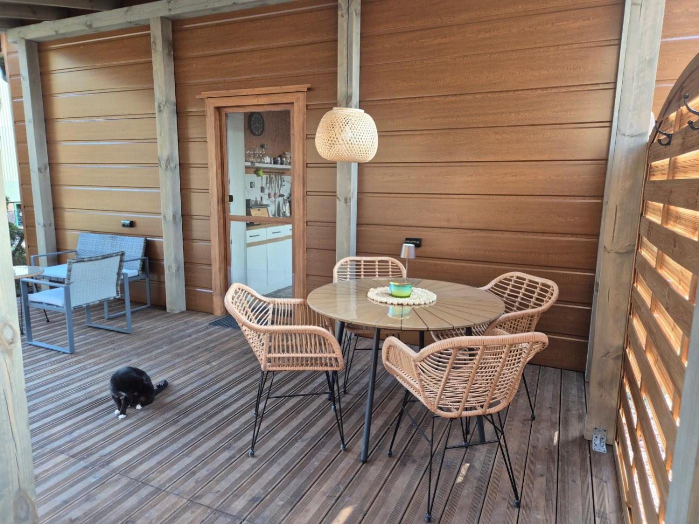 W domu wakacyjnym zapewniono sypialnię (1), łazienkę (1), pościel, ręczniki, jadalnię oraz kuchnię z pełnym wyposażeniem. Do dyspozycji Gości jest także telewizor z płaskim ekranem z dostępem do kanałów kablowych oraz taras z widokiem na ogród.