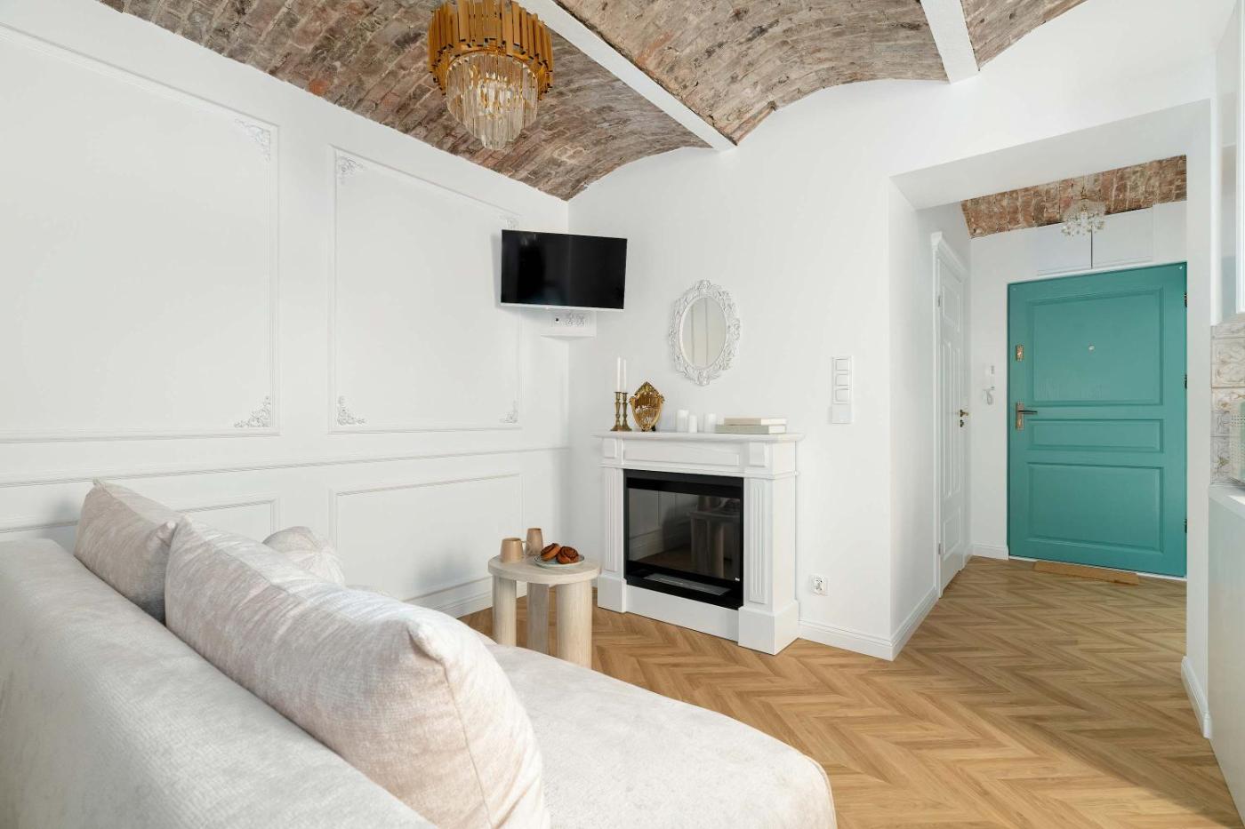 Apartament. Featuring a private entrance, this apartment consists of 1 living room, 1 separate bedroom and 1 bathroom with a shower and a hairdryer. Guests can make meals in the kitchenette that is equipped with a stovetop, a refrigerator, kitchenware and a microwave. The apartment features parquet floors, a seating area with a flat-screen TV with streaming services, a tea and coffee maker, a dining area, as well as a wardrobe. The unit offers 2 beds. Apartament - 5 osobowy. Powierzchnia pokoju ok.: 31 mkw.