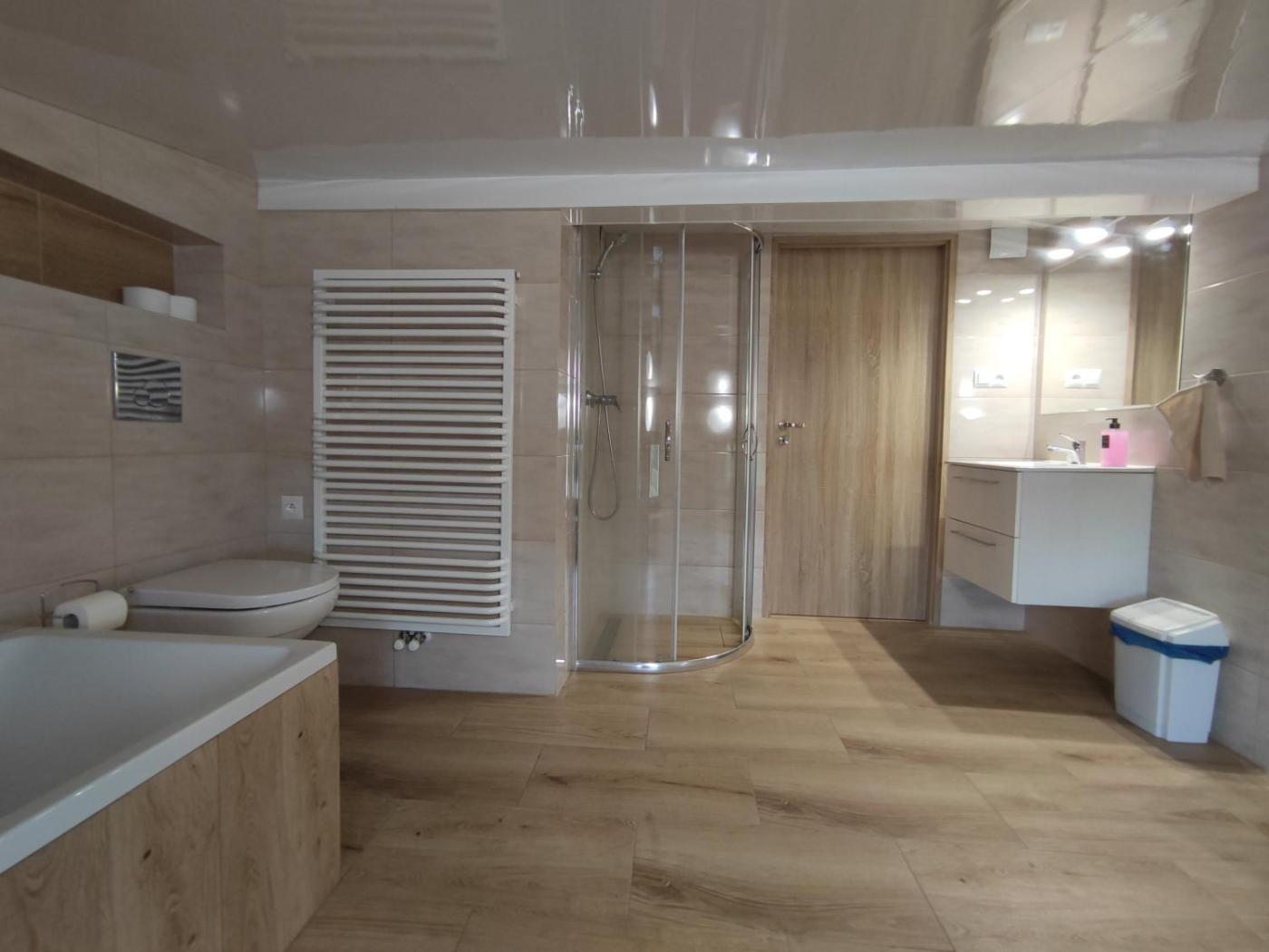 Rodzinny apartament typu Studio. The spacious family room offers a washing machine, a dining area, as well as a private bathroom boasting a bath and a shower. In the fully equipped kitchenette, guests will find a refrigerator, kitchenware, an oven and a microwave. The family room features a wardrobe, an electric kettle, tumble dryer along with an outdoor dining area. The unit has 4 beds. Rodzinny - 5 osobowy. Powierzchnia pokoju ok.: 70 mkw. ;