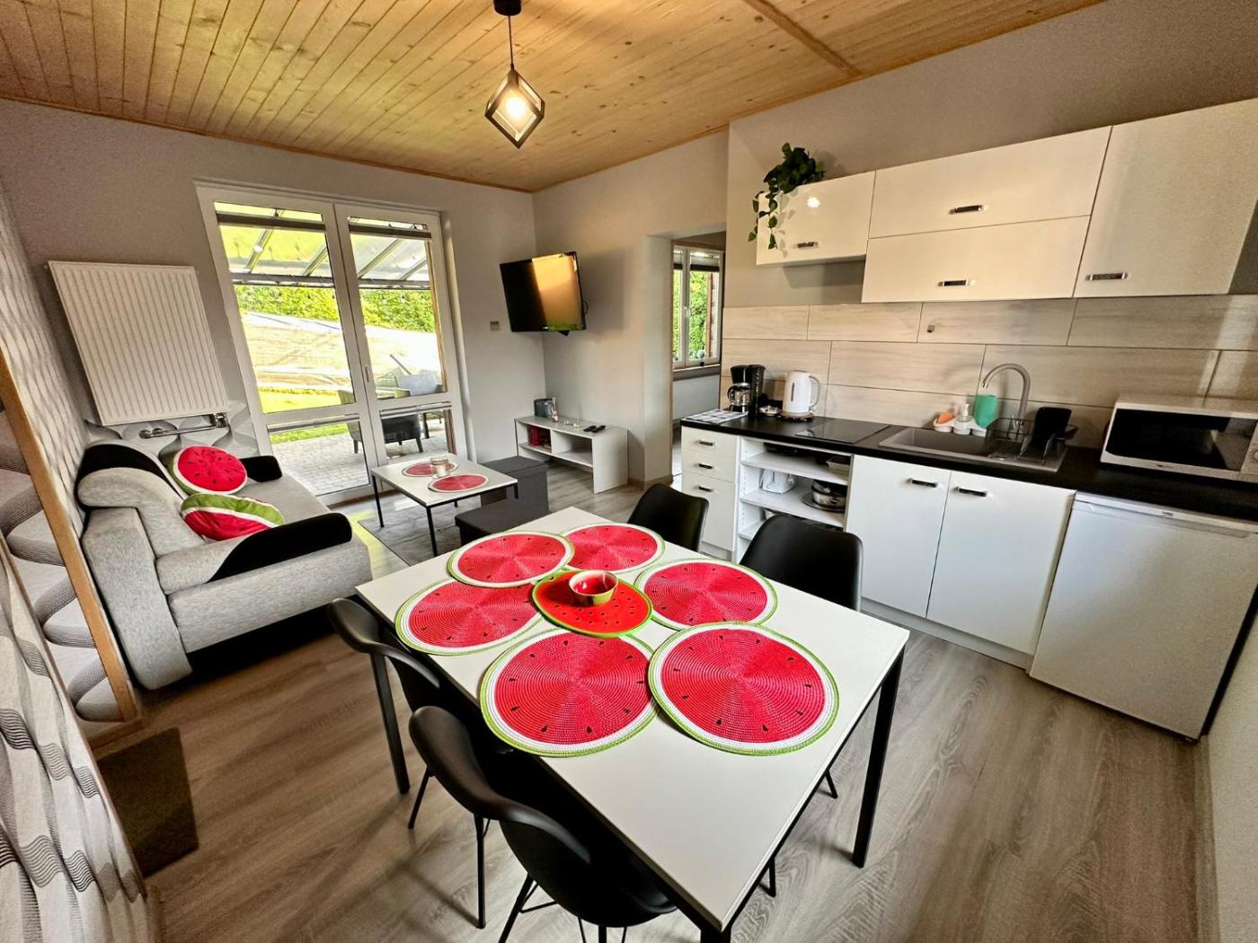 Willa z 2 sypialniami. This villa offers a hot tub. Featuring a private entrance, this villa comprises 1 living room, 2 separate bedrooms and 1 bathroom with a shower and a hairdryer. Guests will find a stovetop, a refrigerator, kitchenware and a microwave in the well-fitted kitchen. The villa also provides guests with a barbecue. Boasting a terrace with garden views, this villa also provides soundproof walls and a flat-screen TV with cable channels. The unit offers 3 beds. Willa - 6 osobowy. Powierzchnia pokoju ok.: 50 mkw.