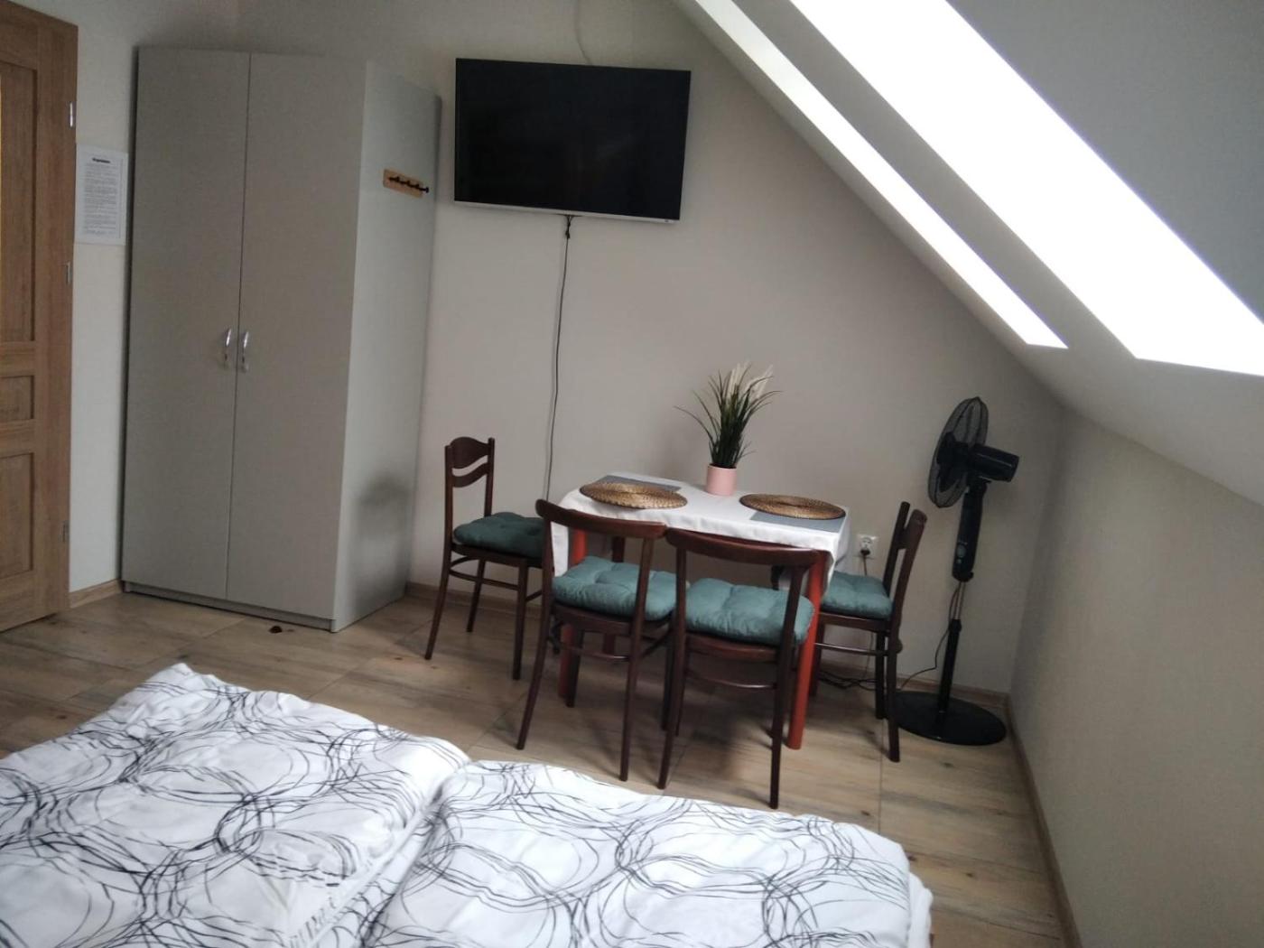 Pokój Dwuosobowy z dodatkowym łóżkiem. The double room features heating, as well as a private bathroom boasting a shower. The double room offers a tea and coffee maker, a dining area, a wardrobe, a flat-screen TV, as well as garden views. The unit has 1 bed. Pokój Dwuosobowy - 3 osobowy. Powierzchnia pokoju ok.: 12 mkw. ;