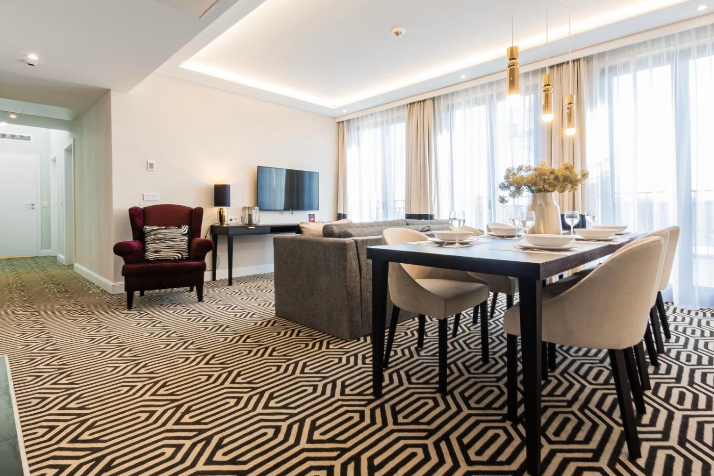 Apartament z 2 sypialniami. This spacious apartment includes 1 living room, 2 separate bedrooms and 1 bathroom with a shower and a hairdryer. In the well-equipped kitchenette, guests will find a stovetop, a refrigerator, a dishwasher and kitchenware. The air-conditioned apartment offers a flat-screen TV with cable channels, a seating area, a dining area, an electric kettle as well as city views. The unit has 3 beds. Apartament - 6 osobowy. Powierzchnia pokoju ok.: 68 mkw.