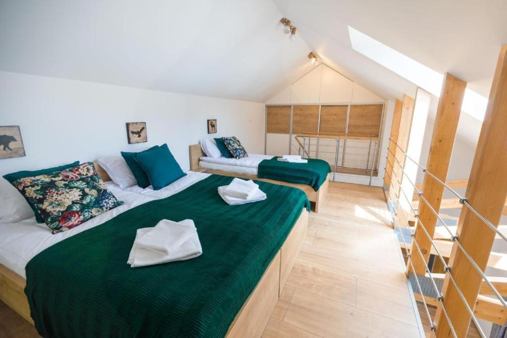 Apartament dwupoziomowy. Featuring a private entrance, this spacious apartment also comprises 1 living room, 2 separate bedrooms and 1 bathroom with a walk-in shower. The well-fitted kitchen features a stovetop, a refrigerator, a dishwasher and kitchenware. Boasting a terrace with mountain views, this apartment also provides a washing machine and a flat-screen TV with streaming services. The unit offers 4 beds. Apartament - 5 osobowy. Powierzchnia pokoju ok.: 70 mkw.