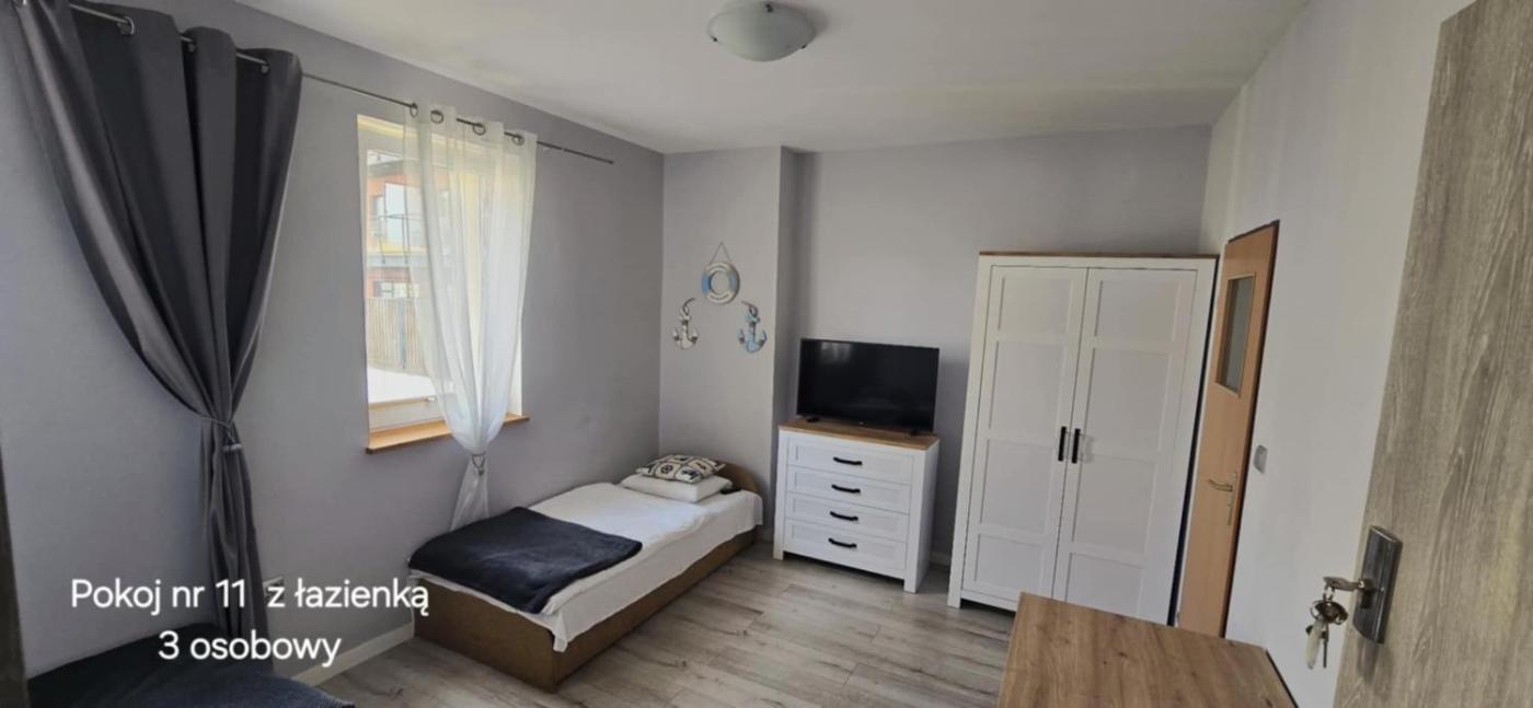 Pokój Trzyosobowy z prywatną łazienką. The triple room provides a wardrobe, an electric kettle, as well as a private bathroom featuring a shower. This triple room features parquet floors and a flat-screen TV. The unit offers 3 beds. Pokój Trzyosobowy - 3 osobowy. Powierzchnia pokoju ok.: 17 mkw.