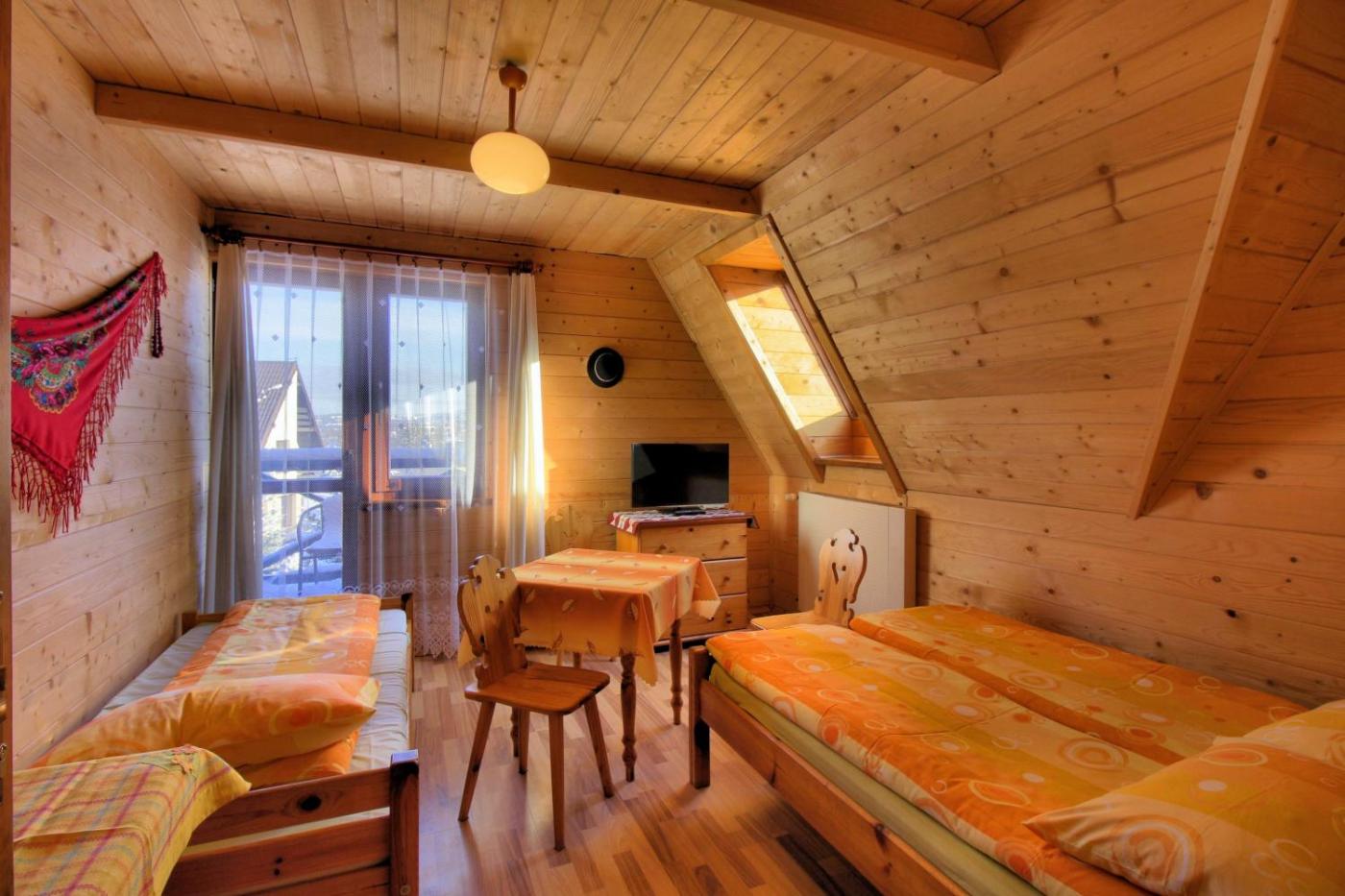 Pokój Trzyosobowy z prywatną łazienką poza pokojem. The triple room offers a private entrance, a wardrobe, a balcony with mountain views as well as a private bathroom featuring a shower. The unit offers 2 beds. Pokój Trzyosobowy - 3 osobowy. Powierzchnia pokoju ok.: 15 mkw. ;